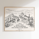 Desert Bible Verse Wall Art - Isaiah 43:19 - Modern Christian Artwork, Wild West Landscape, Western Home Decor, Christian Scripture Line Art, Desert Cactus Print, Rivers in the Desert, Aesthetic Christian Faith Based Gift