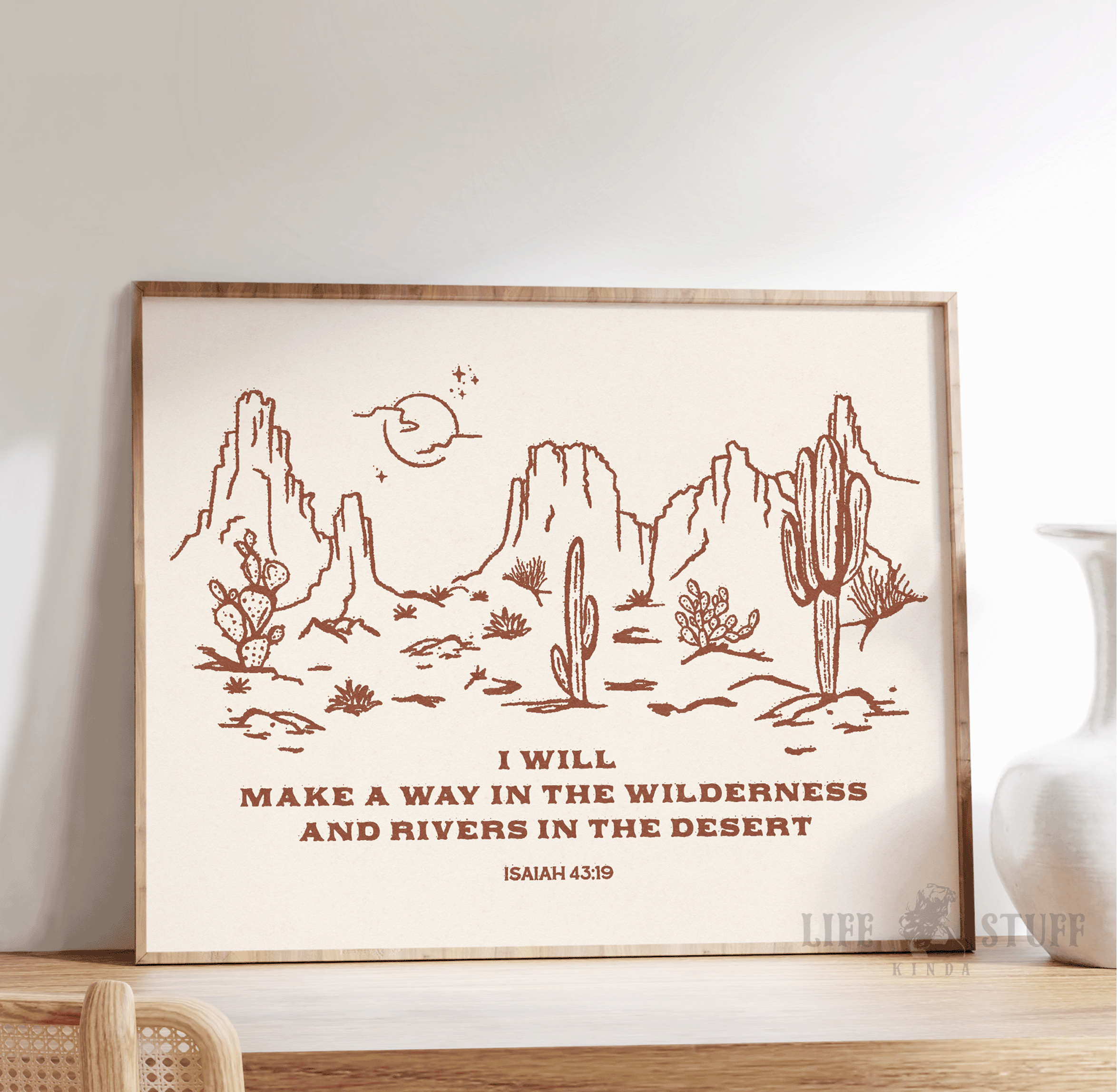 Desert Bible Verse Wall Art - Isaiah 43:19 - Modern Christian Artwork, Wild West Landscape, Western Home Decor, Christian Scripture Line Art, Desert Cactus Print, Rivers in the Desert, Aesthetic Christian Faith Based Gift