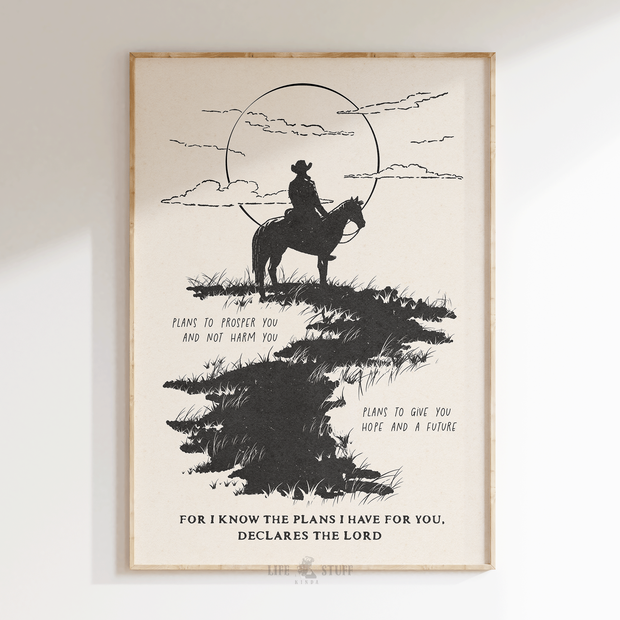 Western Christian art series - with a rugged charm of the desert landscape, this wild west artwork, inspired by Jeremiah 29:11, is perfect faith-based gift for the cowboy or cowgirl in your life.