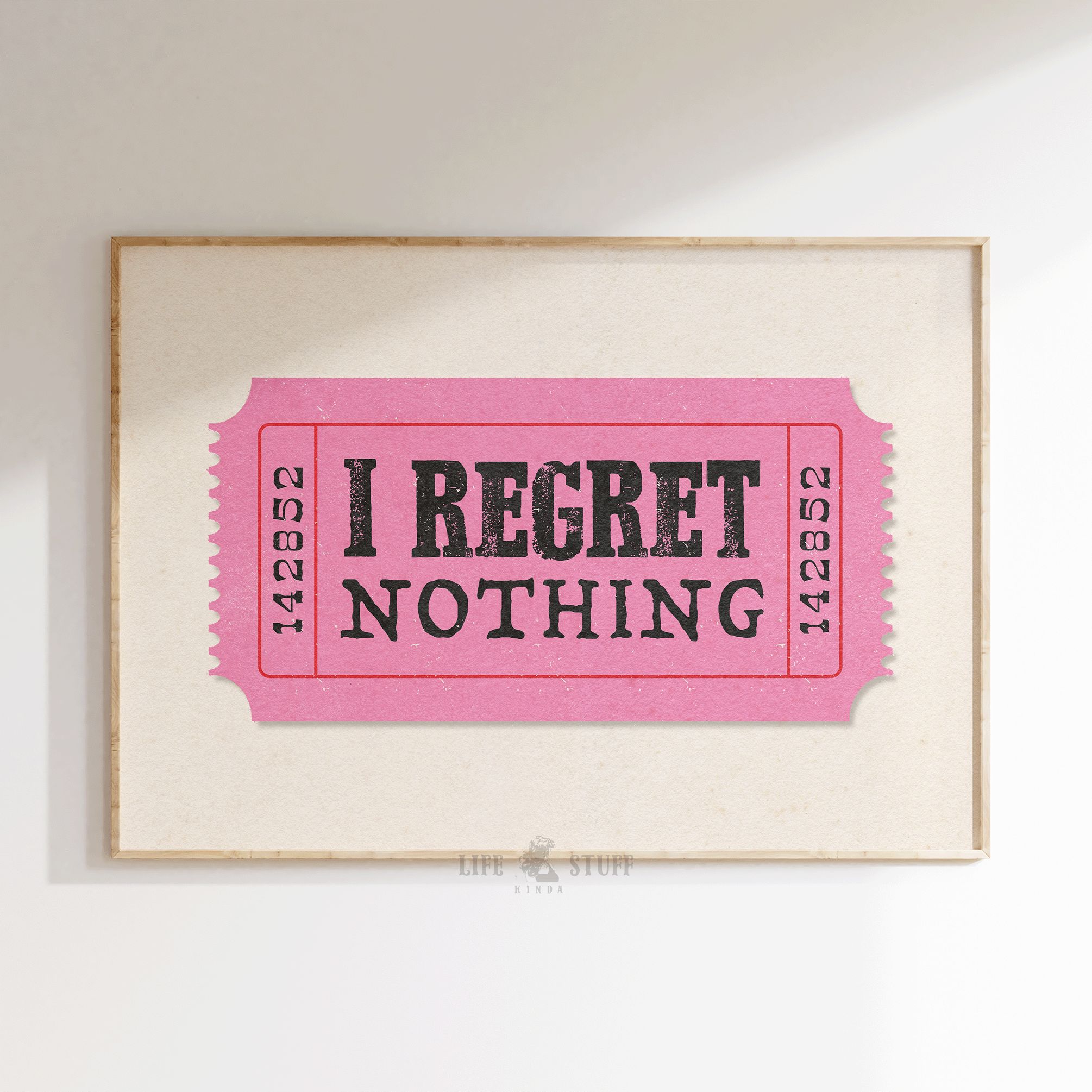 I Regret Nothing Retro Ticket Print, Funny Office Wall Art, Sassy Bar Cart Giclée Poster, Trendy Apartment Funny Affirmation Dorm Room Decor