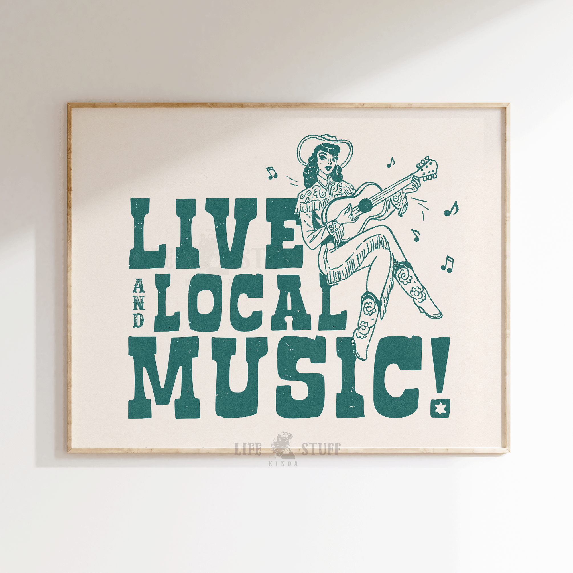 Country Music Art Western Cowgirl Wall Dorm Decor Bar Cart Print Retro Wild West Vintage Aesthetic Trendy Rodeo Girl Musician Room Sign Gift